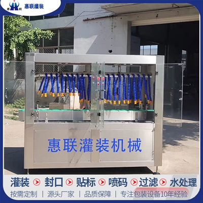青州市惠聯(lián)灌裝機(jī)械有限公司是一家集生產(chǎn)研發(fā)、銷售、服務(wù)于一體的液體灌裝成套設(shè)備生產(chǎn)企業(yè),可根據(jù)廠家要求設(shè)計合理液體灌裝生產(chǎn)線,為用戶提供技術(shù)咨詢、設(shè)計工藝、場區(qū)平面布置、工藝改造、設(shè)備安裝調(diào)試等完善服務(wù)。 公司生產(chǎn)制造各種類型液體灌裝機(jī)、過濾機(jī),水處理設(shè)備及液體灌裝成套設(shè)備。主要產(chǎn)品有:白酒、葡萄酒、黃酒等酒水灌裝機(jī)、食用油、機(jī)油、潤滑油等油類灌裝機(jī)、醬油醋、老抽、生抽等調(diào)味品灌裝機(jī)、防凍液、玻璃水灌裝機(jī)、酒精、84消毒液灌裝機(jī)、車用尿素灌裝機(jī)、口服液灌裝機(jī)、洗滌劑灌裝機(jī)等多種液體、膏體灌裝設(shè)備,全自動/半自動灌裝機(jī)型號多,規(guī)格全,洗瓶機(jī)、瓶子封口機(jī)、打塞機(jī)、熱縮機(jī)、瓶子烘干機(jī)、貼標(biāo)機(jī)、噴碼機(jī)、輸送線、裝箱機(jī)、水處理設(shè)備等全套生產(chǎn)線相關(guān)配套設(shè)備齊全,自產(chǎn)自銷,一站式購齊,售后無憂。